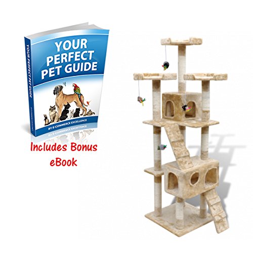 2 Condos Cat Tree Scratching Post In Beige Entirely Covered With Very Soft Plush And Sisal - It Provides Your Cats With So Many Features - Fantastic Playground For your Lovely Cat By eCommerce Excellence
