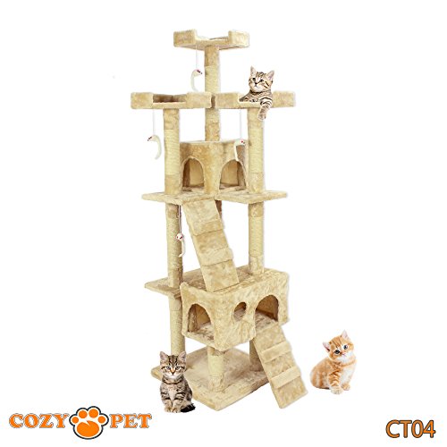 All images of Cozy Pet Deluxe Multi Level Cat Tree Scratcher Activity Centre Scratching Post Toys with Heavy Duty Sisal Cat Trees in Beige CT04