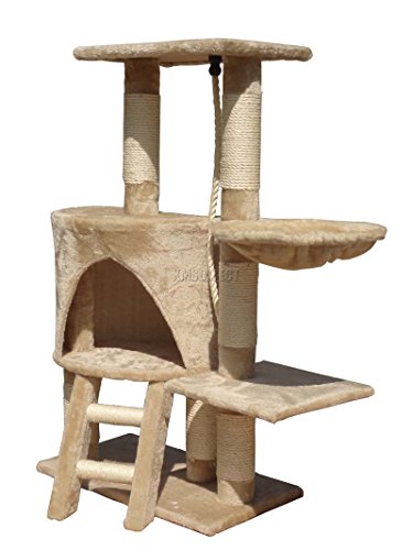 All images of FoxHunter Deluxe Multi Level Cat Scratcher Cat Tree Activity Centre Scratching Post Activity Toys M004 Beige Faux Fur 30cm x 55cm x 96cm Height